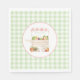 Cute farmer's market themed napkins with gingham and a vegetable stand.