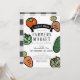 This chic and cute gender-neutral drive-by/drive-thru baby shower invitation features a white background with vegetables such as tomato, carrot, cabbage and cucumber. The reverse side features a white background with black buffalo/gingham check patterns. Personalise for your needs. You can find matching products at my store.