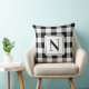 Farmhouse Black Gingham Check Plaid Monogram Cushion
