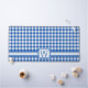 Farmhouse Blue and White Gingham Plaid Monogram Desk Mat