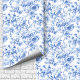 Farmhouse Blue French Toile Roses Floral Wallpaper