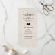 This trendy and rustic wedding program has a modern vibe with its elegant black text, heart silhouette, and script typography on a white wood look background.