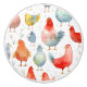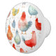 Cute and happy farmhouse chickens, cosy, colourful and rustic style drawing.