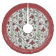 This elegant personalised farmhouse Christmas tree skirt features a hand-drawn pattern of deer skulls adorned in red and cream roses with festive poinsettia flowers, cacti, holly and red winter berries, all against an elegant cream background and a red border.