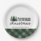 Farmhouse Christmas Plaid Family Name Paper Plate