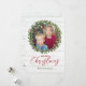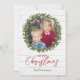 Frame your favourite photo with a lovely holly wreath on top of a white wood background. This rustic Christmas card will delight family and friends. The boards are also shown on the back with an optional space for a message or year review.