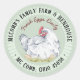 Original watercolor hen on her nest with eggs, on a spring green background and decorative border.