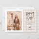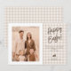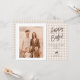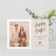Personalizable rustic Easter card design by Destei featuring your custom family photo on one side, surrounded by a clean white frame. Next to the photo, a beige gingham background displays “Happy Easter” in brown lettering with space beneath for your own custom greeting message. A cute lying-down bunny silhouette sits below, followed by space for a name and year. The back continues the gingham pattern creating a cohesive and classic design. A warm and stylish way to send personalized Easter greetings.