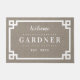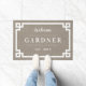 Modern farmhouse WELCOME doormat personalised with your family name and established date with a Greek key border. Please note the burlap canvas background texture is part of the printed design and the product is not made of real burlap material. Click the Customise It button to add your own text and create your own unique one of a kind design!