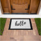 Farmhouse Hello Script Black and White Faux Tile Doormat
