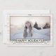 Show your rustic farmhouse style with this cosy holiday greeting. The front is designed with a place to insert one horizontal photograph. Your photo is surrounded by a modern black border that has the words 'Happy Holidays' designed into the frame as well as sage green leafy sprigs accented by red berries. The background is an image of rustic whitewashed shiplap. Customise the front with the date and your own names, just use the easy, provided templates. The reverse side is printed in a cream and black buffalo check pattern.
