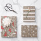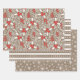 Elegant white foliage and red berries on rustic kraft paper decorate the main wrapping paper with lovely coordinates of snowflakes and a festive stripes.