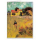 Farmhouse in Provence by Vincent van Gogh is a vintage fine art post impressionism architectural painting featuring a landscape with a farmer in the meadows and a gate leading to a farm in the south of France.