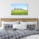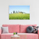 Canvas landscape print of a farmhouse with cypress trees and waving wheat grains in spring in the Val d’Orcia valley in Tuscany, Italy.
