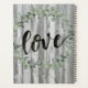 Farmhouse Inspiration I by Jennifer Paxton Parker. Features "Love" in script with a beautiful green wreath and distressed wood panels.