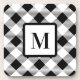 Farmhouse Monogram Black White Buffalo Plaid Coaster