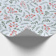 Farmhouse country pale blue, red and dark green foliage, wreath, leaves, rustic pattern cute holiday gift wrapping paper.