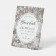 Rustic wedding please sign our guestbook sign with a vintage vibe, featuring a white romantic flower print on grey weathered wood planks.
