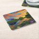 Farmhouse Purple Roof Pond at Sunrise Square Paper Coaster