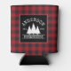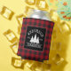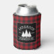 Family Name Farmhouse Red Buffalo Plaid with Pine Trees Can Cooler