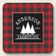 Farmhouse Red Buffalo Plaid Family Name Coaster
