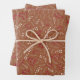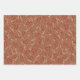 Farmhouse country terracotta, red and white foliage, wreath, leaves, rustic pattern cute holiday gift wrapping paper sheets. Set of 3.