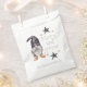 Add a festive and whimsical touch to your holiday gatherings with this “Merry and Gnomie” favour bag, featuring a charming gnome in a tall black hat with a long white beard. Surrounded by black and gold stars and the playful phrase Merry and gnomie, this bag is both fun and functional. Personalised with your family name or holiday message, it makes every treat or small gift feel extra special.