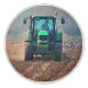 Preparing for the next crop. The tractor ploughs (ploughs) the field and wild birds look for food in the freshly turned soil. Watercolor England.