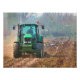 Preparing for the next crop. The tractor ploughs (ploughs) the field and wild birds look for food in the freshly turned soil. Watercolor England.