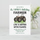 Farming Tractor Field Farmer's Birthday Invitation designed by Nisha Prabhu. Featuring original digital design illustration of tractor on wheat field with typography ''Farmer. Life Is Better With Plants.'' Fully Customisable. Personalise with your details. Invite your guests to a farm-tastic birthday celebration with this charming Farming Tractor Field Farmer's Birthday Invitation! Featuring a delightful design that captures the essence of the countryside, this invitation is perfect for any farmer or farm enthusiast. Whether you're hosting a party in the barn or out in the fields, this invitation sets the tone for a fun and memorable event. Personalise with your party details and get ready to sow the seeds of a fantastic celebration. Order now and let the farming festivities begin!
