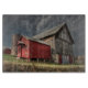 This amazing Getty Images photo features a dark and dramatic sky over a vibrant red wooden barn in Suttons Bay, Michigan.