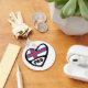 A cool, cartoon style heart design with the flag and the 3 letter country code of the country.