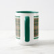 Coffee mug with the Farrell clan tartan, a classic plaid pattern in tan and green, with bright yellow, black, and white accents. Five styles available in two sizes.