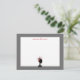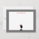 A flat notecard featuring an illustration of a black hat stand wearing a red, grey, and black fascinator at bottom.  Personalise with your name in red script at top.  Border is grey.
