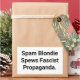 Spam Blondie Spews Fascist Propaganda. Social-Commentary Splash-Art sticker-design by Jeff Hankamer at Artjunkhaus