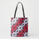 Fashion abstract swirling pattern in red, black and silver white colours tote bag.