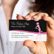 Stylish and trendy fashion boutique business card design in pink, black, and white including a fashion model silhouette and simple layout.