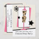 A 1950's vintage retro inspred fashion clothing swap party invitation featuring an illustration of a pink and leopard print dress form. Decorative stars on front and back. Personalise the text on front and back.