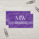 Elegant, classy and stylish business profile cards for anyone in the fashion and beauty industry. DESIGN - "Barely there" white floral swirls are backed by a dark purple (bordering on lapis) coloured background, which has a horizontal transparent band on which customisable text templates appear for your personal and/or business information. CUSTOMIZE IT - Personalise the wording, change the monogram to your corporate or your own initials, add a logo or art work by using the "customise it" button and feel free to move, add or delete any template to make it unique.