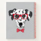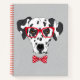 This design features a hand drawn portrait of Dalmatian dressed in red glasses and heart design bow tie.