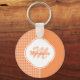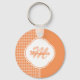 Fashionable Orange Houndstooth Monogram and Name Key Ring