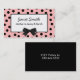 Stylish mummy calling card done with a whimsical pink frame, with black polka dots around a white text area. Graphics of a black bow at the bottom of the frame gives this card a retro fashion look. Black text on the front and white text on the back is customisable. Personalise all the text, on the front and back, to suit your needs. Great for arranging play dates with other moms.