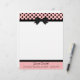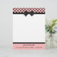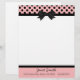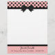 Pretty letterhead stationery, with graphics of a pink, with black polka dot header, with a black border and black bow, in the middle. A black band, at the bottom, acts as a border for the pink footer part of the page, with custom black text ready to personalise. Pretty retro yet stylish look.