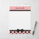 Pretty letterhead stationery, with graphics of a pink, with black polka dot footer, with a black border and black bow, in the middle. A black band, at the top, acts as a border for the pink header part of the page, with custom black text ready to personalise. Pretty retro yet stylish look.