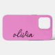 This fashionable purple iPhone case features customisable text in a stylish handwritten style.