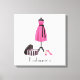 Beautiful, elegant fashion art on canvas that reads Fashionista. Original art with a pink dress on form, pink heels and a black and white box. You can customise with your name. A great accent for any fashionista's room. You can even change the background colour in the customise function.