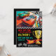 Celebrate in high gear with this racing-themed birthday card! Designed with fast cars, a trophy, and fun typography like "Ready! Set! Go!", it's ideal for car-loving kids. Fully customisable with your party details.