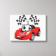 Fast car cartoon flag race - Choose back colour Canvas Print