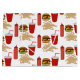 A fast food burger theme pattern design featuring illustrations of burgers, fries, soda drink and ketchup. A perfect fast food design for anyone who loves fast food, hamburgers, french fries, cheeseburgers etc.