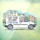 This "Fast Food Delivery" Window Cling Graphic is bold enough to show you offer to deliver food to your customers and includes a phone number. White courier fast food delivery van illustration. White van image on a clear background.